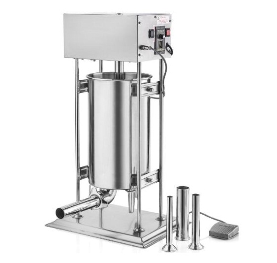سوسیس پر کن برقی الکتروکار مدل EC-29 محصولی از شرکت ایرانی الکتروکار است. این مدل از انواع سوسیس پر کن برقی الکتروکار از نظر ظاهری کاملا شبیه مدل دستی سوسیس پرکن الکتروکار است با این تفاوت که راهاندازی آن از طریق نیروی الکتریسیته انجام میگیرد. سوسیس پر کن برقی الکتروکار از بدنهای تمام استیل ساخته شده است. آلیاژ استیل علاوه بر اینکه باعث مقاومت و طول عمر بیشتر دستگاه میشود، باعث رعایت حداکثری استانداردهای بهداشتی در حین انجام کار خواهد شد و این بر قیمت سوسیس پر کن برقی الکتروکار موثر است. خرید سوسیس پرکن برقی الکتروکار بیشتر برای غذاخوریها، هتلها و یا مطبخهایی که چندان به سوسیسهای کارخانهای اطمینان ندارند و قصد ارایه غذایی همخوان با ذائقه مشتریان خود دارند، پیشنهاد میشود. انواع سوسیس پر کن برقی الکتروکار میتواند کار شما را برای درست کردن یک سوسیس لذیذ با استفاده از گوشت قرمز یا سفید، راحتتر کند.