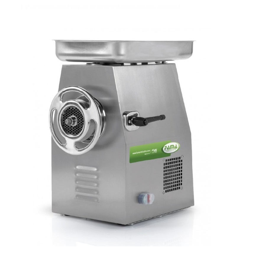 چرخ گوشت فاما مدل TI32 R با قدرت 3 اسب بخار برای استفاده صنعتی برنامه‌ریزی شده اما با برق شهری کار می‌کند و سیستم NVR به کار رفته در آن اجازه بالاتر رفتن ولتاژ مصرفی را از حد معینی به دستگاه نمی‌دهد، و بدین ترتیب از مصرف بیش از حد برق جلوگیری می‌کند. سرعت گردش تیغه چرخ گوشت صنعتی فاما 140 دور در دقیقه و نمایانگر صنعتی بودن و قدرت دستگاه است. قطر گلویی چرخ گوشت فاما ایتالیا در ابتدا و انتها 9 و 8 سانتی‌متر است. نکته قابل توجه در ویژگی‌های چرخ گوشت ایتالیایی فاما داشتن سیستم تهویه برای موتور دستگاه است؛ چنین قابلیتی از داغ شدن موتور چرخ گوشت و فشار آمدن به آن و در نتیجه پائین آمدن عمر دستگاه جلوگیری می‌کند. چرخ گوشت رومیزی فاما 52 کیلوگرم وزن دارد و فرم طراحی رومیزی آن خرید چرخ گوشت فاما و قرار دادن آن را روی میز و پیشخوان برای هر قصابی و رستورانی عملی می‌سازد. شاید قیمت چرخ گوشت فاما نسبت به چرخ گوشت‌های ساخته ایران بالاتر باشد که چنین چیزی با توجه به وارداتی بودن آن طبیعی است، اما با نگاهی به کیفیت آن متوجه می‌شویم که کالای باارزشی در ازای این مبلغ تهیه کرده‌ایم. توجه به این نکته شاید مفید باشد که خرید چرخ گوشت فامای ایتالیایی به معنای تهیه چرخ گوشتی برای استفاده طولانی مدت است و طبیعتا قیمت چرخ گوشت فاما را نیز باید با توجه به توانایی‌های آن در نظر بگیریم. برای خرید اینترنتی چرخ گوشت فاما ایتالیا آن را سفارش دهید تا ما چرخ گوشت سالم و با گارانتی یک ساله را در اولین زمان ممکن به دست شما برسانیم.